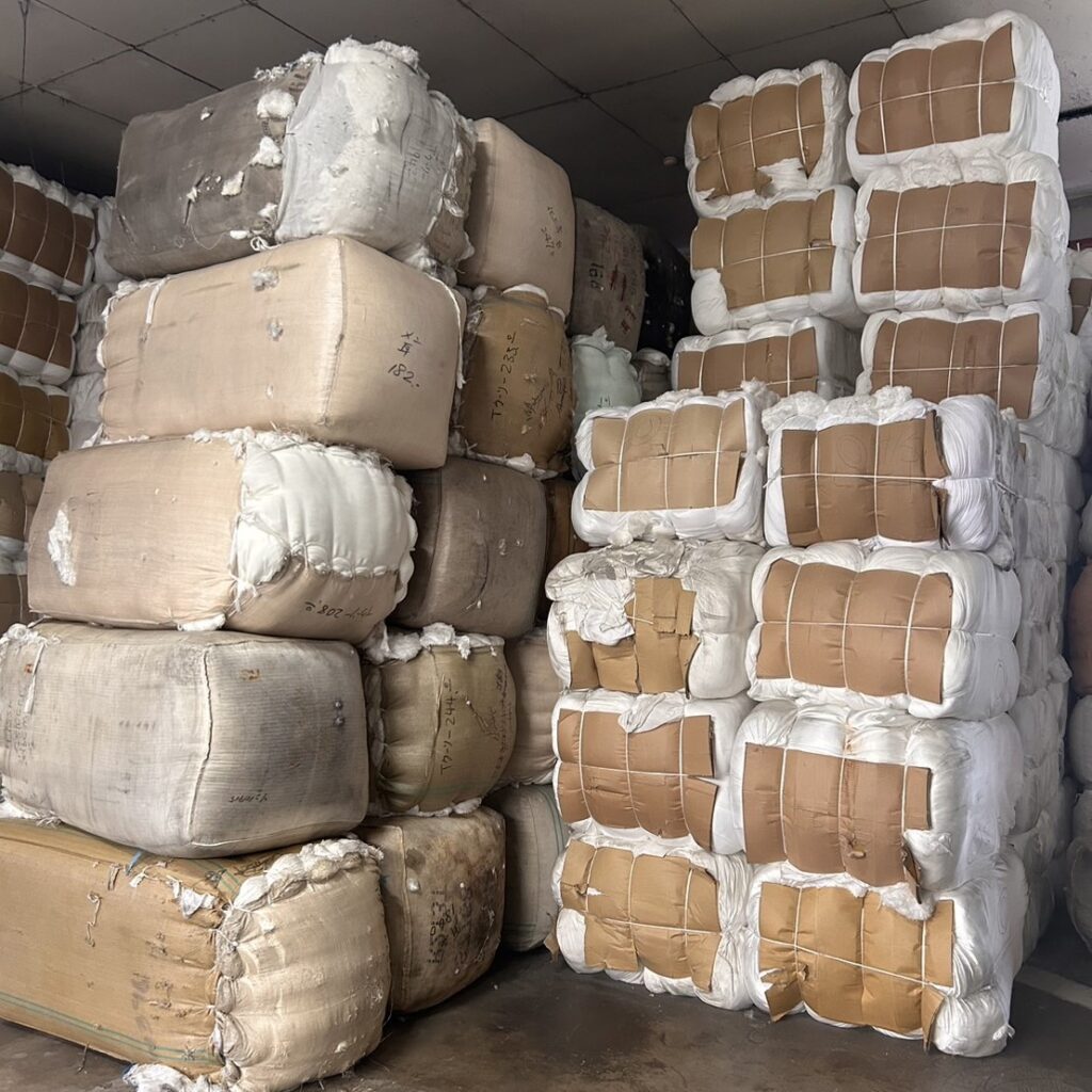 - メーカーや商社からの廃棄物を再利用する為のリサイクル綿製造依頼